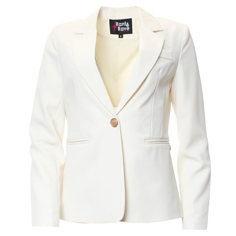 The Rant and Rave Amara Blazer in Cream is a symbol of refined elegance, tailored to perfection for smart occasions. With its sophisticated lapel collar and a single-button closure, this blazer embodies timeless style. The creamy hue adds a touch of sophistication, making it an ideal choice for those seeking a polished and versatile look. Meticulously crafted with attention to detail, this blazer guarantees both comfort and durability. Elevate your ensemble for formal events with the Rant and Rave Amara Blazer—a wardrobe essential for those who appreciate quality and enduring design.