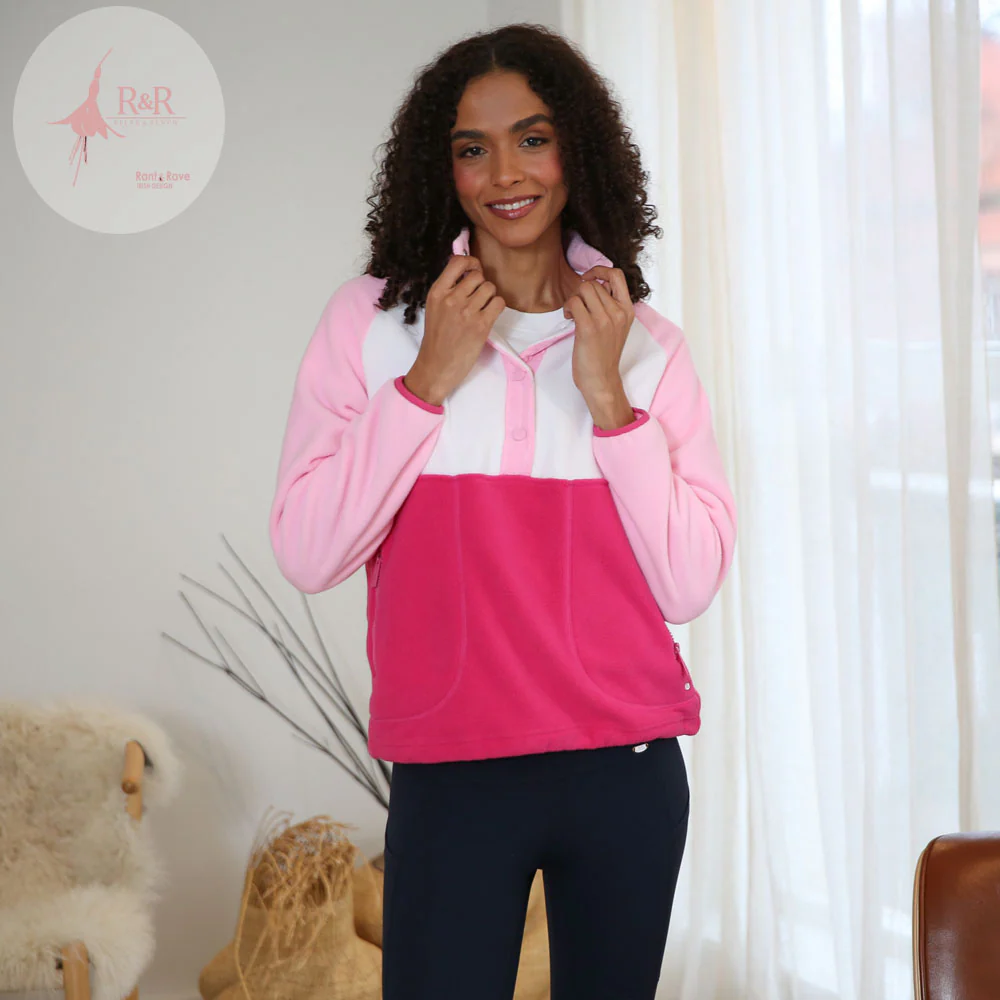 Featuring a high neckline with popper button fastening and a relaxed fit, the Emerson Fleece is both practical and flattering. The pink colour-block design adds a fun, feminine touch while keeping the look wearable and easy to style. Finished with front pockets for added comfort and functionality.